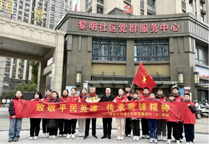 近日,海安街道黎明社區黨總支聯合明道小學六9中隊開展“致敬平民英雄 傳承雷鋒精神”主題活動,在青少年中掀起“學習雷鋒好榜樣 爭做文明好少年”的學習熱潮。