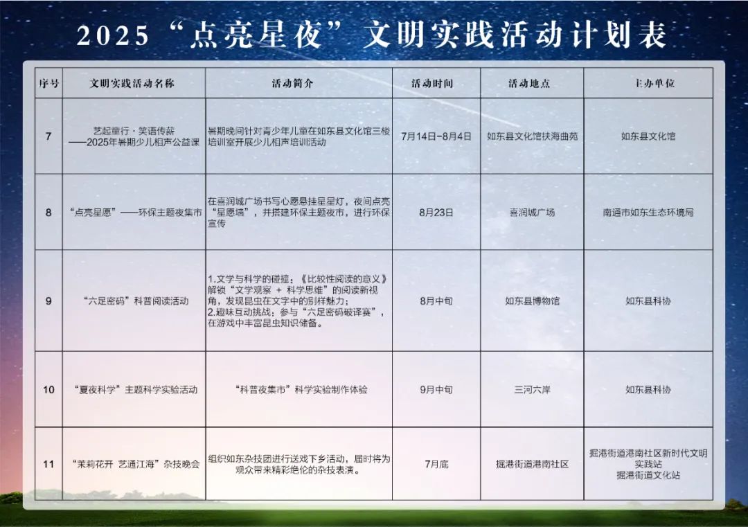 “越夜越美”夜集市、明信片集章打卡、書法講座、七夕游園、星空電影、神秘魔術......多個趣味活動釋放小城活力。