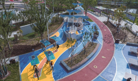 “以前一下大雨,為民西路到交通路那段路積水能齊膝,我得背著孩子蹚水送他上學。現在不一樣了,積水問題改善了,家長們再也不用擔心了。” 家住金欣佳園的王女士的切身感受,正是通州海綿城市建設的生動注腳。作為地勢低平的亞熱帶季風氣候區,通州曾長期受內澇困擾。2021年,通州印發《通州區生態文明建設規劃的通知》,將海綿理念融入城市肌理:透水鋪裝讓雨水“秒滲入地”,地下蓄水池收集雨水反哺綠植,市民中心屋頂草坪實現雨水收集與生態隔熱雙贏。同年,通州啟動城區污水處理環境提升333工程項目,對城區11個片區開展雨污分流改造。截至目前,8個片區、超30平方千米的改造全面完工,市民雨天出行難大幅緩解;金沙灣片區22.8平方千米海綿城市建設穩步推進,金樂公園、通呂運河北岸公園、慈善文化公園等項目實現“小雨不積水、大雨不過夜”,市民涉積水投訴下降超70%。