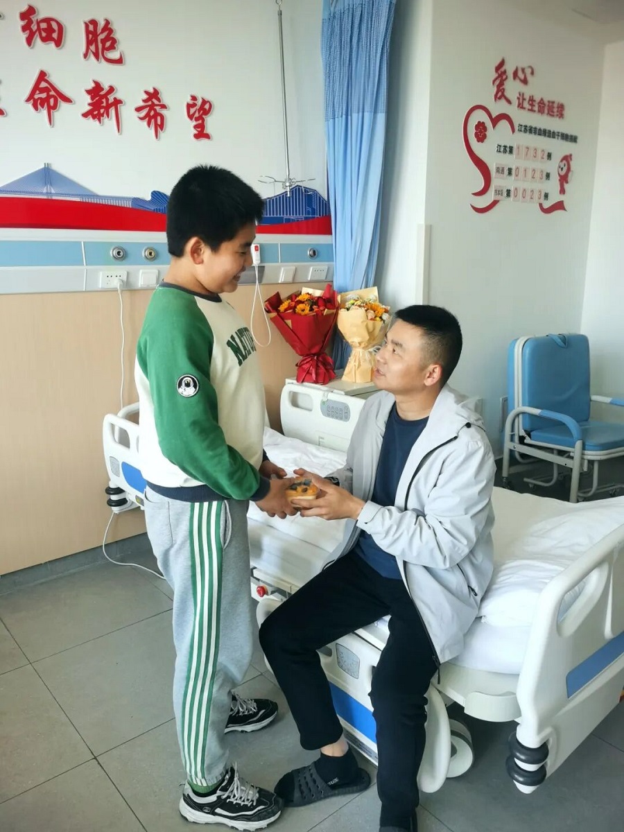 市紅十字會安排了專人全程細致的服務,確保讓王金建大愛的種子綻放出希望之花。捐獻期間,一個溫馨的時刻尤為動人:恰逢王金建兒子的生日,懂事的孩子特意準備了生日蛋糕,送給為他人生命奮力拼搏的“英雄爸爸”。這溫馨一幕,為這場生命接力增添了濃濃的親情暖意。