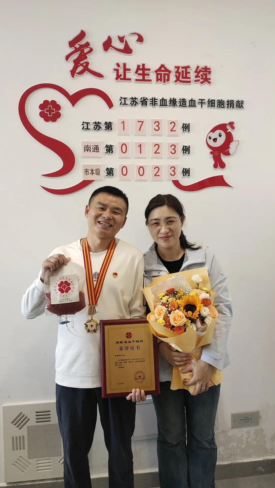 非血緣造血干細胞配型成功的概率不到十萬分之一,每一例成功配型都堪稱“生命奇跡”。這份奇跡,在不到一年的時間里,兩次眷顧了王金建。2025年11月18日,南通市紅十字志愿者王金建成功捐獻378毫升造血干細胞混懸液,為遠方素不相識的血液病患者點亮生命的希望。