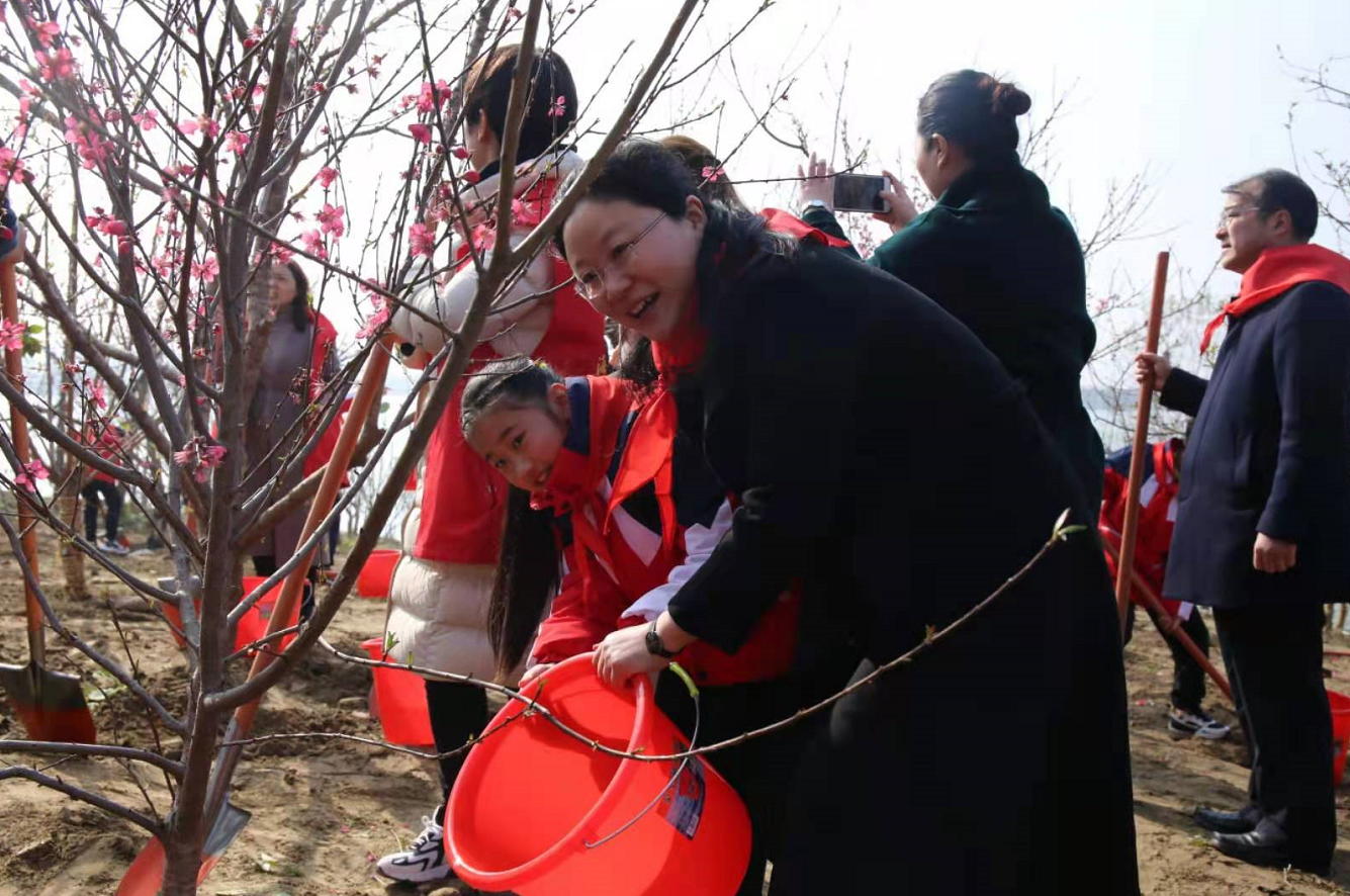 “今日種下一棵樹,來年收獲一片綠。”“愛樹、植樹、護(hù)樹,你是我的‘金子樹’。”“你獻(xiàn)一點(diǎn)綠,我獻(xiàn)一點(diǎn)綠,讓綠成為‘生命主旋律’!”……植樹后,少先隊(duì)員們把親手制作的、署了自己名字的護(hù)樹卡掛在樹上,舉手比耶,與小樹苗合影留念。“這次活動讓我們有了植綠、愛綠、護(hù)綠的意識,今天種下的樹一定會茁壯成長,也希望自己和身邊的家人朋友能夠健康、堅(jiān)強(qiáng),最后長成參天大樹。”崔霖鈺小朋友眨巴著大眼睛,告訴記者。