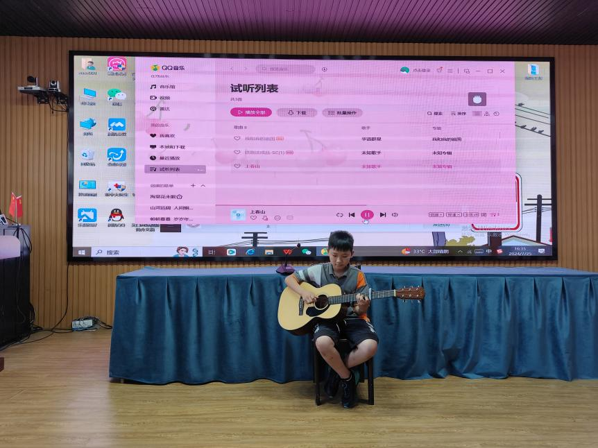 關(guān)口村致力于為孩子們?cè)谛M獯罱ㄒ粋€(gè)展現(xiàn)才華的舞臺(tái)。“梅子金黃杏子肥,麥花雪白菜花稀。”在潘誠(chéng)宇小朋友朗朗的誦讀聲中,夏日的澎湃生機(jī)似乎撲面而來(lái)。繆佳奇小朋友則為大家?guī)?lái)吉他獨(dú)奏,優(yōu)美舒緩的旋律、落落大方的臺(tái)風(fēng),贏得大家的熱烈掌聲。