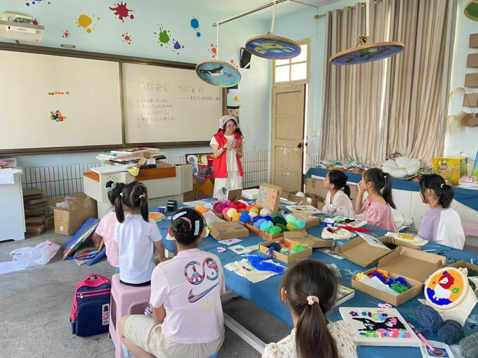 發(fā)揮豐富想象,創(chuàng)造無(wú)限可能。河口鎮(zhèn)各村(社區(qū))開展手工藝術(shù)活動(dòng),鼓勵(lì)孩子們用色彩和創(chuàng)意表達(dá)自己的內(nèi)心世界,培養(yǎng)審美情趣和創(chuàng)新能力。錦成村志愿者教授學(xué)生自制七彩飛盤環(huán)節(jié),他們的飛盤上有清涼的西瓜、浪漫的落日、自由的飛鳥,還有致敬八一建軍節(jié)的愛黨童心。