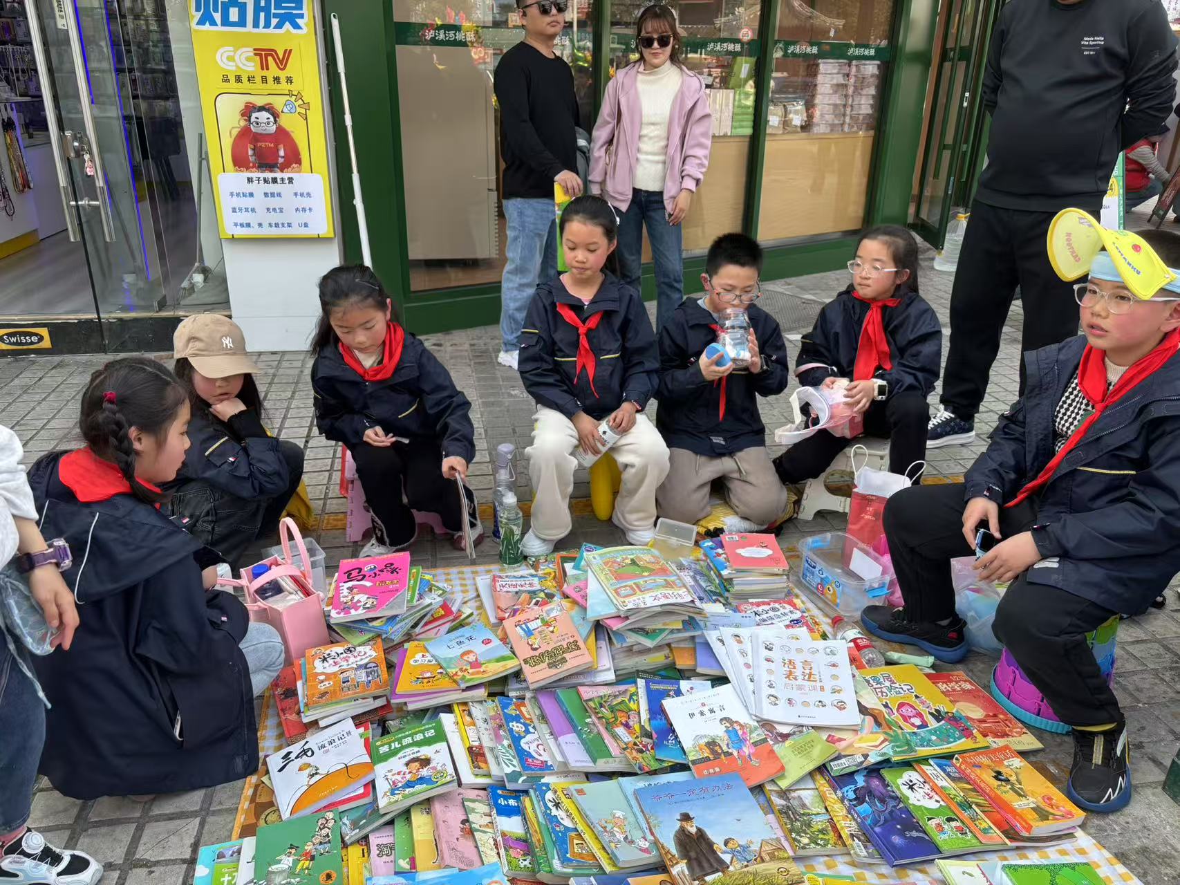 活動(dòng)當(dāng)日,隊(duì)員們來到人民公園、喜潤(rùn)城等人流多的地方,精心布置的攤位。五彩斑斕的海報(bào)、琳瑯滿目的書籍,將一個(gè)個(gè)小攤位裝點(diǎn)成了一個(gè)充滿文化氣息的小集市。隊(duì)員們紛紛化身“小售貨員”,熱情地向過往行人介紹各類書籍,從經(jīng)典文學(xué)名著到趣味科普讀物,從精彩的童話繪本到實(shí)用的學(xué)習(xí)輔導(dǎo)資料,應(yīng)有盡有。