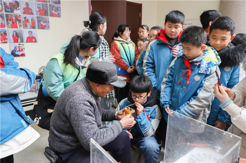 儀式結(jié)束后,參會(huì)人員觀摩了贛榆區(qū)新時(shí)代文明實(shí)踐中心“文明?傳承”未成年人文明實(shí)踐活動(dòng)。中心各功能區(qū)可謂座無虛席、熱鬧異常。鬧花燈、猜燈謎等傳統(tǒng)民俗活動(dòng),貝雕、藤編等非遺文化展示,踢毽子、抖空竹等益趣體育運(yùn)動(dòng),還有好少年分享會(huì)、團(tuán)體心理輔導(dǎo)、讀書沙龍、科普宣傳等,超多妙趣橫生的活動(dòng)讓每一位孩子都能收獲滿滿。