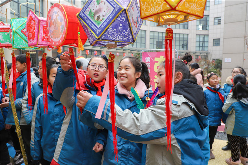 寫滿了燈謎的小紙條掛滿了一樓內(nèi)庭,原來這里正在進(jìn)行“五鼠鬧新春”猜燈謎送祝福活動(dòng),同學(xué)們積極踴躍,或冥思苦想,或激烈討論,現(xiàn)場氣氛熱烈。猜中燈謎的學(xué)生有的領(lǐng)到了糖人、有的拿著面人、還有的正吃著獎(jiǎng)品糖葫蘆,洋溢在他們臉上的笑容真是燦爛。