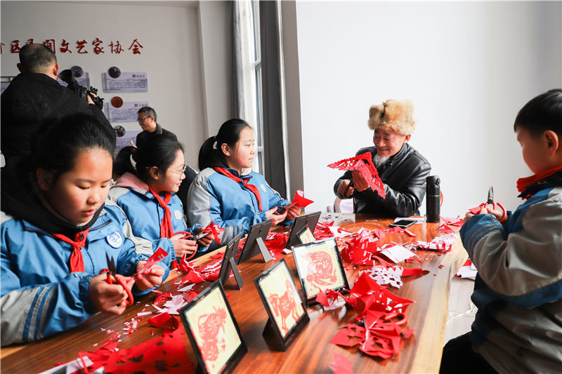 為了讓青少年與非遺“零距離”親密接觸、領(lǐng)略傳統(tǒng)技藝的魅力,中心邀請多位民間藝人現(xiàn)場展示糖塑、剪紙、貝雕等非遺技藝,讓學(xué)生體驗(yàn)不一樣的非遺樂趣,感受傳統(tǒng)文化魅力。很多同學(xué)對(duì)這些非遺技藝產(chǎn)生了濃厚的興趣,拿起專用剪刀和樣紙認(rèn)真創(chuàng)作起自己的第一幅作品,在老師的指導(dǎo)下,剪出了樣式各異的花樣,不時(shí)發(fā)出興奮的感嘆。