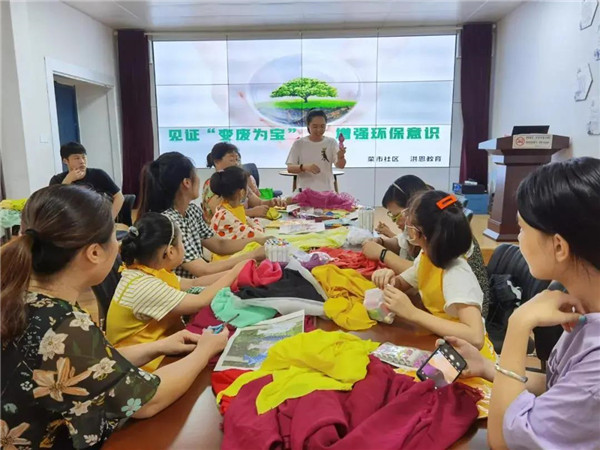 近日,在朐海社區組織開展的“變廢為寶”增強環保意識親子活動現場,小朋友和家長們用收集的邊角料布頭、絲綿、紐扣等,在志愿者的指點下,做成了一只只栩栩如生的小動物、掛飾等。此次活動旨在引導家長和孩子們樹立垃圾回收利用、環保節能的意識,帶動更多的人參與到環保節能的行動中來。