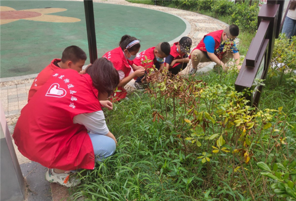 師專二附小的同學們自發組織對校外綠化帶里的殘存垃圾進行清理,小志愿者們手拿垃圾袋,認真仔細地撿拾細碎垃圾,為美化環境貢獻自己的力量。