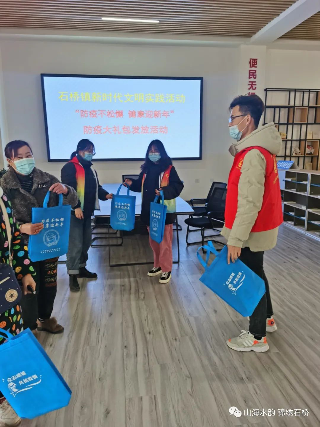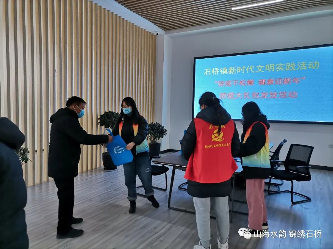 春節(jié)將至,返鄉(xiāng)人員增多,為了守護人民群眾的健康,鞏固來之不易的疫情防控成果,營造眾志成城、攜手戰(zhàn)“疫”的濃厚氛圍,石橋鎮(zhèn)開展“防疫不松懈 健康迎新年”防疫大禮包發(fā)放活動,向困難群眾贈送裝有滅菌口罩、便攜式酒精噴霧、消毒濕巾、防疫宣傳彩頁的防疫暖心關(guān)愛大禮包2000余份,并耐心為群眾科普防疫小知識,充分引導(dǎo)群眾正確認(rèn)識、科學(xué)預(yù)防和應(yīng)對疫情。不少群眾表示,有了這個大禮包,我們對疫情防控的認(rèn)識更深了,也更加安心了。