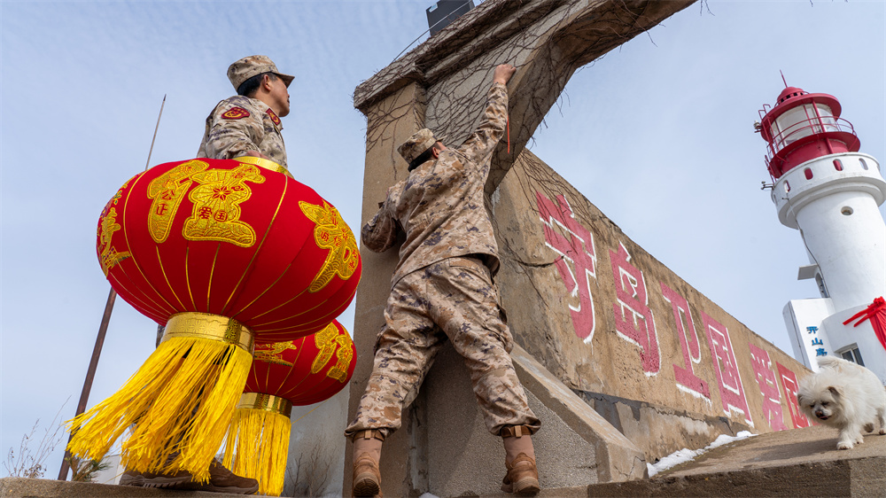 巧合的是,今年在島上執勤的也是去年春節執勤的三位民兵,這就意味著他們又一年不能和家人、親友在一起歡度春節。對此,執勤民兵孫善會笑著說,“老所長和王大姐守島32年中,只有5個春節下島與家人團聚,父母去世、女兒結婚時都因執勤沒及時趕回,真正做到了‘一朝上島、一生奉獻’。如今,我們接過了守島衛國的接力棒,就要舍小家顧大家,把愛國奉獻作為精神追求,守護著萬家燈火就是我們的職責,更是我們神圣的使命。”