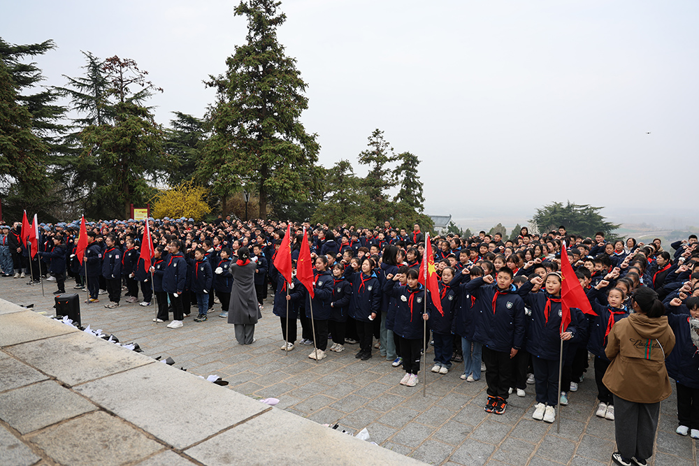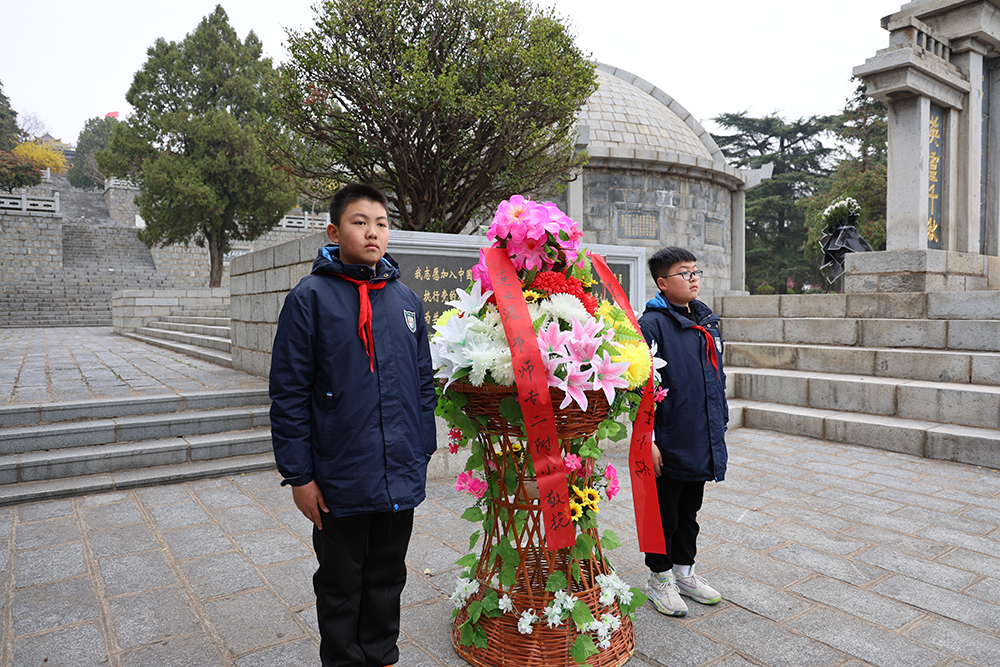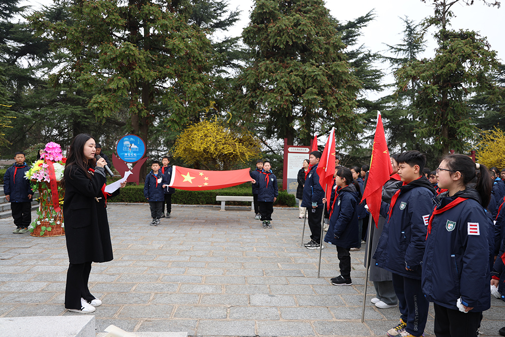 在烈士紀念碑前,黨總支副書記胡蕓帶領黨員代表重溫入黨誓詞,大隊輔導員房金帶領少先隊員重溫入隊誓詞。師生在錚錚誓言中進一步堅定理想信念,凝聚奮進力量。接著,五(7)班帶來朗誦《緬懷革命先烈,致敬時代英雄》,表達對革命烈士的崇高敬意。