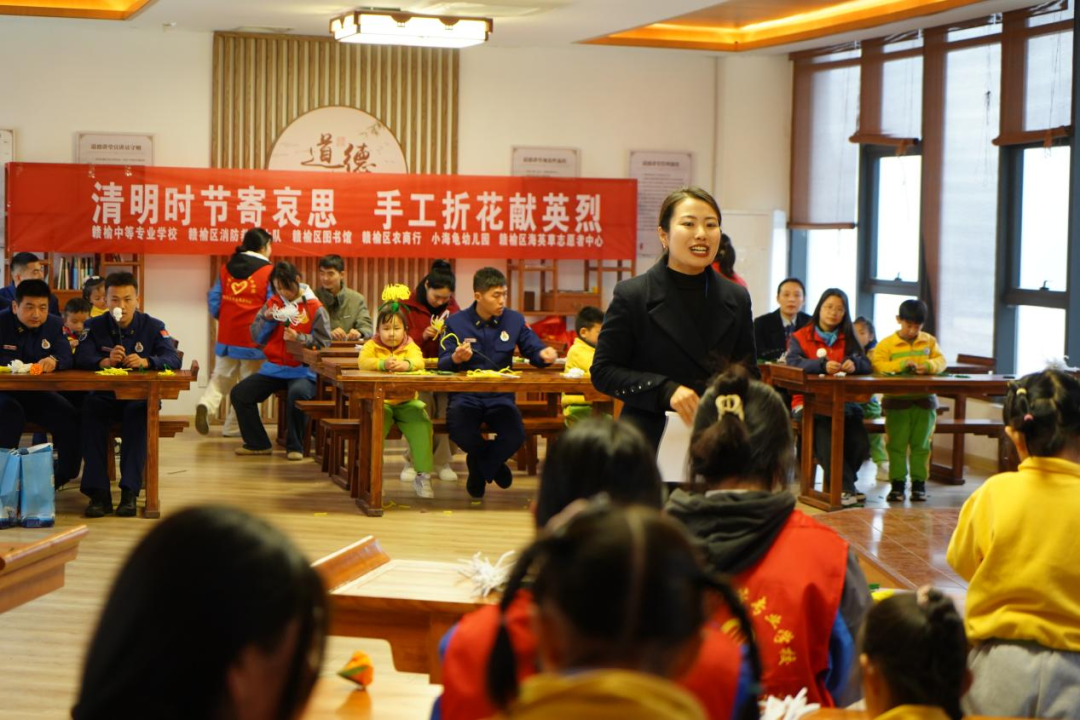 4月2日,連云港贛榆區(qū)海英草志愿者中心聯(lián)合贛榆中專、贛榆消防救援大隊、區(qū)圖書館、贛榆農商行、小海龜幼兒園等單位在區(qū)新時代文明實踐中心舉辦“清明時節(jié)寄哀思 手工折花獻英烈”主題活動,通過手工折花憶清明、話習俗知清明和詩歌誦清明等形式,追思革命先烈,弘揚傳統(tǒng)文化。