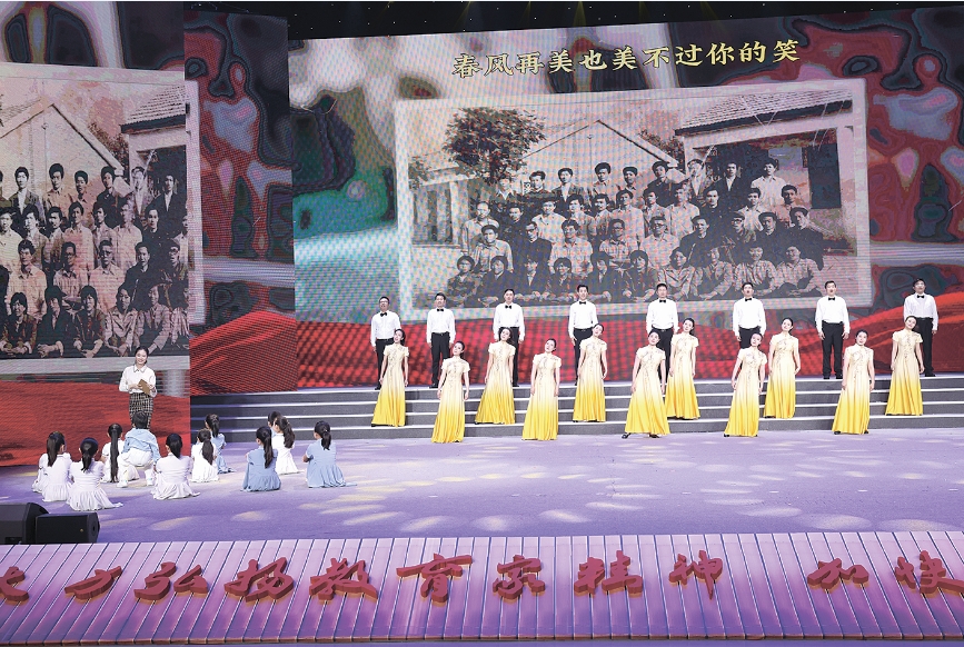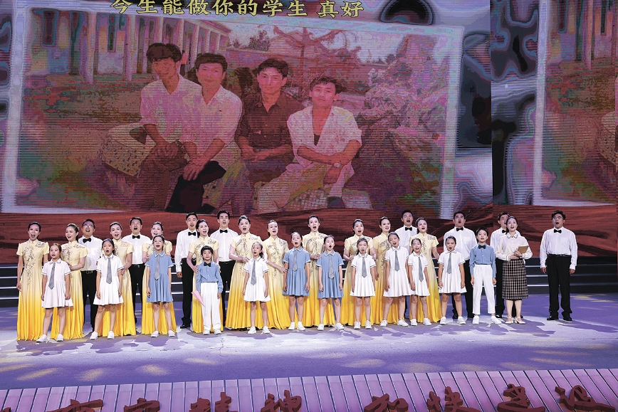 本次活動(dòng)分為四個(gè)篇章,以理想、情操、學(xué)識(shí)與仁愛為主題,通過精彩的歌舞演出,生動(dòng)的現(xiàn)場(chǎng)訪談等形式,歌頌教師“擇一業(yè)、終一生”的奉獻(xiàn)精神。“歲月催人老,老師不會(huì)老,今生能做你的學(xué)生真好……”節(jié)目《老師不老》感人至深,道出了老一輩教師扎根鄉(xiāng)村,為偏遠(yuǎn)地區(qū)學(xué)生點(diǎn)亮希望之光的奉獻(xiàn)精神;“她是光、她是聲音、她是母親,她是祖國(guó)!”連云港市特教中心聾盲生通過節(jié)目《追隨祖國(guó)》,表達(dá)了大家發(fā)自內(nèi)心的,對(duì)祖國(guó)與老師深沉的愛……