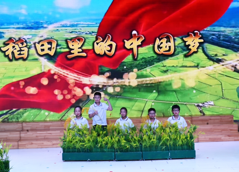 一年級學(xué)生呈現(xiàn)的英語童話劇《Launch. Go to space》,將語言學(xué)習(xí)與太空探索主題相結(jié)合,展現(xiàn)出國際化視野;五六年級學(xué)生的朗誦《稻田里的中國夢》,以袁隆平院士的事跡為核心,傳遞“珍惜糧食、胸懷家國”的理念,引發(fā)全場共鳴;最后,四年級學(xué)生的合唱《唱響未來》響起,全體演員登臺合唱,用歌聲表達(dá)對未來的憧憬,演出在溫馨和諧的氛圍中落幕。