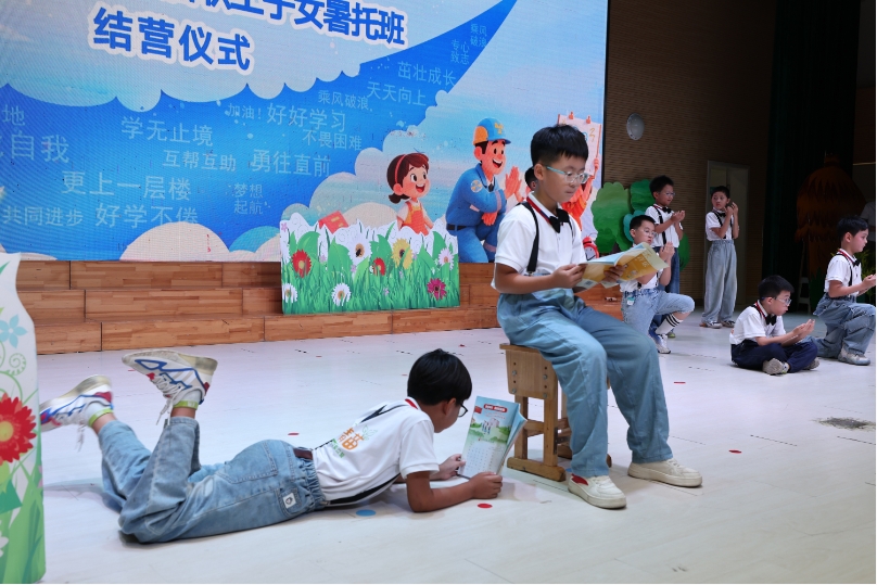 閉營儀式的匯報演出,成為孩子們展示暑托學(xué)習(xí)成果的重要平臺。15 個節(jié)目涵蓋舞蹈、合唱、朗誦、童話劇等多種形式,均由營員參與表演,全面展現(xiàn)孩子們的學(xué)習(xí)收獲與精神風(fēng)貌。