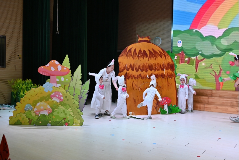 演出以三年級女生演繹的《太平鼓》開場,鏗鏘有力的鼓點瞬間點燃現(xiàn)場氛圍,拉開演出序幕;二年級學(xué)生帶來的歌曲《二十四節(jié)氣歌》,以明快的節(jié)奏呈現(xiàn)傳統(tǒng)農(nóng)耕智慧,讓觀眾感受傳統(tǒng)文化魅力;中文童話劇《一園青菜成了精》,用生動有趣的劇情演繹菜園里的故事,充滿童真童趣。