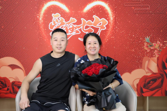 合影拍攝結束后,“恩愛夫妻訪談”環節緊接著展開。在溫馨的交流區,主持人邀請參加活動的夫妻分享他們的婚姻故事與相處之道。結婚40年的薛大爺握著老伴的手,緩緩講述起過去的歲月:“我們年輕時日子苦,一起下地干活、養家糊口,遇到困難從沒紅過臉,就是互相體諒、互相扶持。”簡單的話語,卻道出了婚姻長久的真諦。