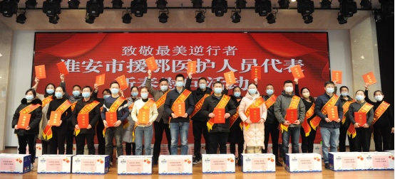 2月8日下午,市文明辦聯合市委網信辦、市商務局、淮安農商行共同舉辦“致敬最美逆行者”淮安市援鄂醫護人員代表新春慰問活動,為23名“新時代淮安好人”、市直援鄂醫護人員送上榮譽證書、慰問金和新年禮包。