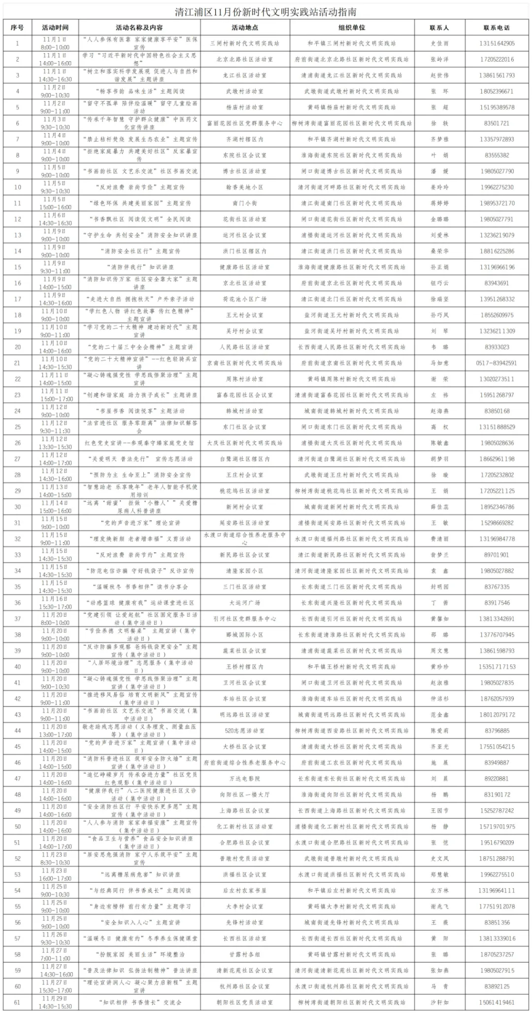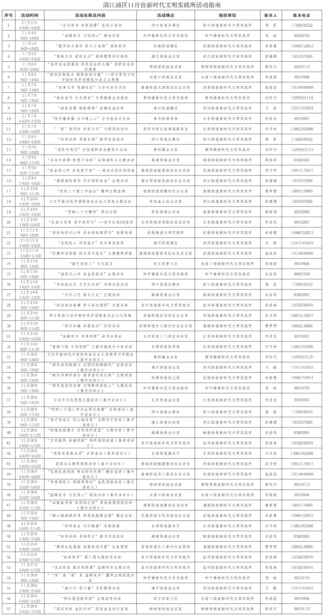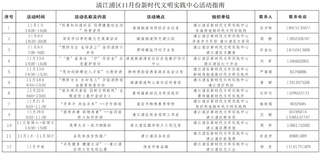 文明在心,服務在行。我區將圍繞溫暖秋冬主題,繼續發揮新時代文明實踐作為凝聚群眾、服務群眾、引導群眾的有效載體和有力助手的作用,讓文明更加貼近生活、貼近群眾。以下是11月活動計劃(部分):