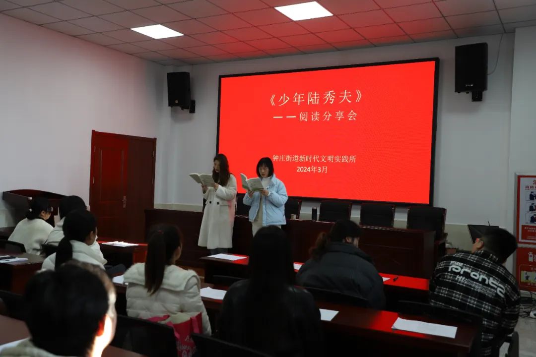 為傳承和弘揚中華優秀傳統文化,營造濃厚的讀書氛圍,2月23日,鐘莊街道新時代文明實踐所組織開展了以“讀一本書,分享一次心得體會”為主題的讀書分享會。活動現場,讀書愛好者聲情并茂地為現場觀眾呈現一場有聲有色的詩詞盛宴。
