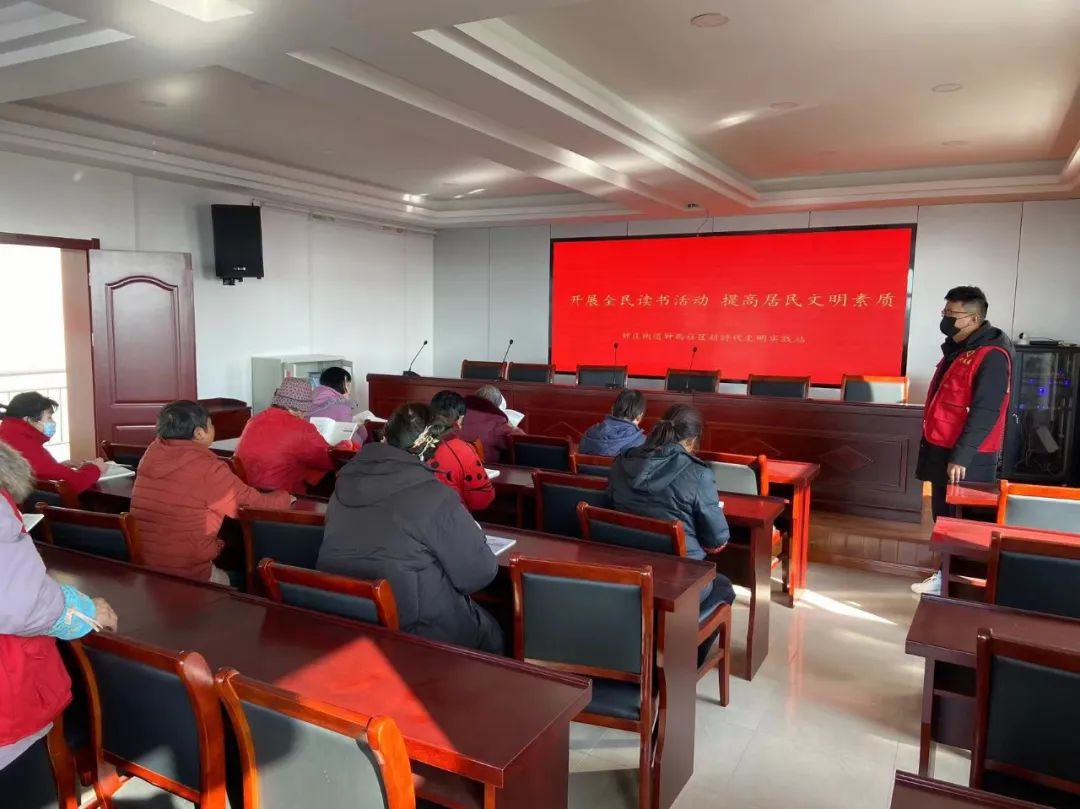 春風送暖,書香彌漫。為深化全民閱讀,豐富轄區廣大干群的業余文化生活,今年,鐘莊街道以書為媒,依托新時代文明實踐所(站)、農家書屋等載體,組織開展全民閱讀系列活動,積極營造“愛讀書、讀好書、善讀書”的良好氛圍。