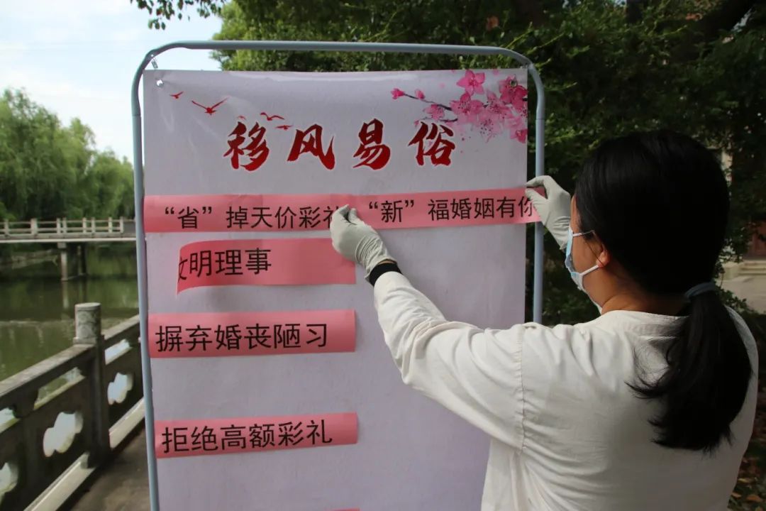 南莫鎮鄧莊村、高陽村、林廟村、朱樓村等新時代文明實踐站通過舉辦專題講座、發放宣傳單、快板說唱等方式,向村民宣傳高額彩禮的危害性,文明婚俗的重要性,引導群眾摒棄農村婚宴大操大辦、高額彩禮、鋪張浪費等不良習俗,從自身做起,自覺抵制陳規陋俗,做到婚事新辦、喜事簡辦,不要彩禮要幸福,爭做弘揚時代新風的踐行者、傳播者。