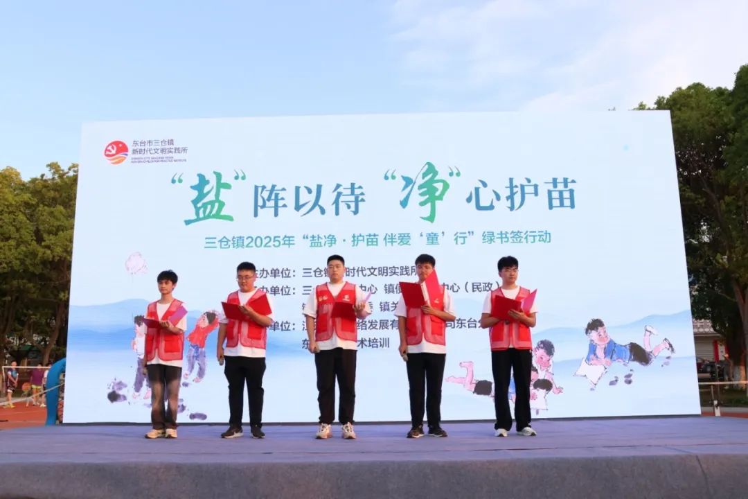 7月19日晚,鹽城東臺三倉鎮新時代文明實踐所創新服務陣地,將“鹽凈·護苗 伴愛‘同’行”綠書簽行動的清風與“蘇超”聯賽的激情,一同注入充滿煙火氣的口袋公園。一場融合文化守護與體育狂歡的文明實踐活動,在居民搖扇納涼的歡聲笑語中上演,繪就了小鎮夏夜獨特的文明圖景。