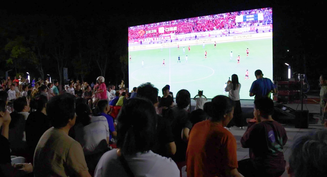當“護苗”活動的溫情余韻未散,口袋公園臨時架設的大屏幕瞬間亮起,將在南通足球訓練中心如皋基地的綠茵場搬到了居民眼前。“蘇超”激烈的角逐牢牢抓住了大家的視線,每一次精妙的傳球配合、驚險的門前救險,都引發此起彼伏的驚嘆、歡呼與掌聲。老人們搖著扇子點評戰術,年輕人熱血沸騰討論賽況,孩子們雖不完全懂規則,也被現場熱烈的氣氛所感染,跟著大人一起鼓掌。小小的口袋公園化身公共客廳,足球的魅力將不同年齡層的居民緊密聯結,點燃了小鎮夏夜的熱情。