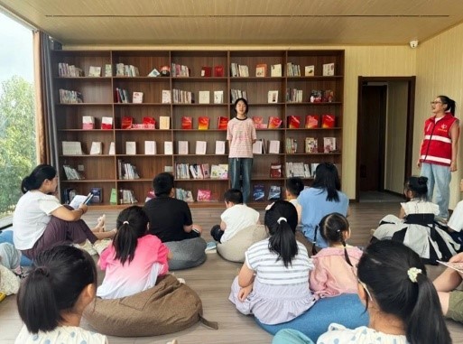 閱讀活動中,各個親子家庭圍坐在一起,孩子們用稚嫩的聲音講述自己感興趣的閱讀繪本,共同沉浸在書的世界里,領略閱讀的魅力,暢游在知識的海洋,現場氛圍溫馨而融洽。在志愿者的指導下,家長們通過指讀、講解、提問等互動方式,幫助孩子理解書籍內容,激發孩子的想象力。孩子們積極上臺和大家交流讀書心得,分享精彩內容與好詞好句,濃濃的書香彌漫在整個活動現場。