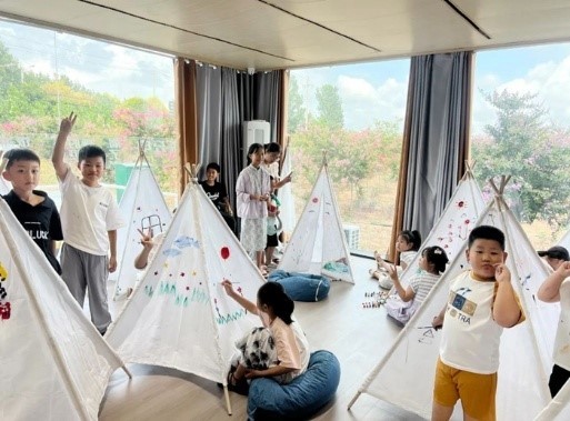一頂頂潔白的小帳篷,給孩子們帶來無盡的童話想象。在志愿者的指導下,小小畫家們執起畫筆,蘸上顏料,與小伙伴相互配合,認真調色,涂涂畫畫,在帳篷上施展“魔法”,盡顯想象力。不一會兒,原本白色的帳篷被裝點得五彩斑斕,各式各樣的圖案展示出孩子們豐富的內心世界。家長們在一旁協助,親子間的默契在互動中升溫,歡聲笑語回蕩在活動場地。