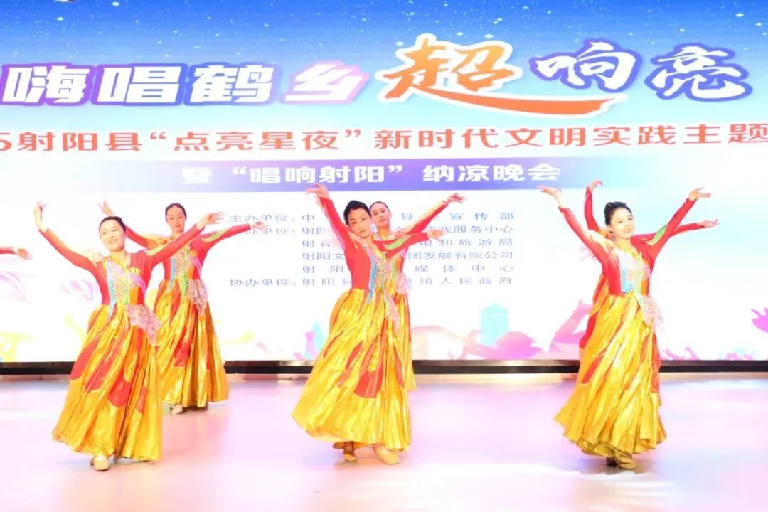 射陽縣吾悅廣場的紅色納涼晚會上,宣講員講述著“文抗”先輩以筆為槍的故事,臺下觀眾聽得入神,紅色知識搶答時大家舉著手喊答案。黃沙港鎮(zhèn)泊心廣場上,川劇變臉演員手袖一甩就換張臉譜,引得陣陣驚呼,《魚蝦滿倉幸福來》的舞蹈跳著漁港豐收的喜慶。海河鎮(zhèn)孩子蘸著顏料在扇面上拓印,大人跟著做艾草錘。洋馬鎮(zhèn)燈光球場,籃球賽正打得火熱,夜跑隊伍戴著熒光飾件跑過“十里菊香”步道,金菊廣場上,村民跳著廣場舞,志愿者遞來消暑西瓜,晚風(fēng)里滿是歡喜。