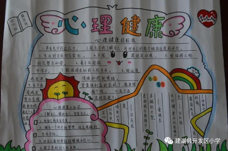 同學(xué)們利用課余時(shí)間編寫手抄報(bào),自己設(shè)計(jì)排版、繪圖和抄寫,以文字、繪畫、漫畫等形式多角度、多形式地向全體學(xué)生普及心理健康知識。同學(xué)們做的手抄報(bào)內(nèi)容豐富,設(shè)計(jì)新穎,富有創(chuàng)造性,用自己的設(shè)計(jì)表達(dá)自己獨(dú)特的感受,一幅幅作品就是一顆顆積極陽光的心靈展示,孩子們用最絢麗的圖案、最生動(dòng)的語言文字、最真實(shí)的情感,展示了健康積極的生活態(tài)度。