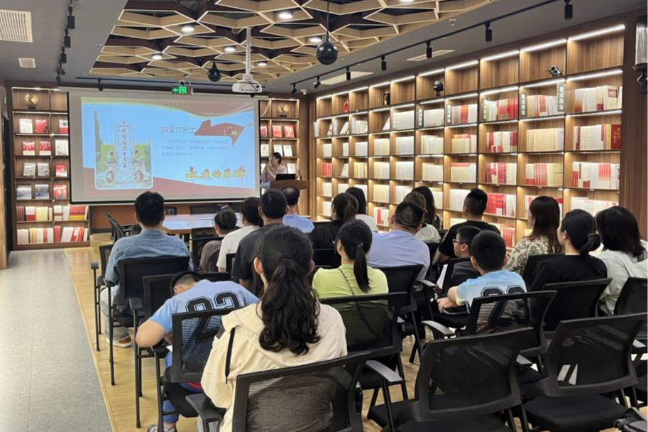 瀆上·老西門騰飛書局里,數(shù)十名居民正在聆聽胡寶才烈士的紅色故事。這里每天晚上開展讀書沙龍、理論宣講、紅色故事分享等活動,成為了夏季居民最喜愛的理論夜校。