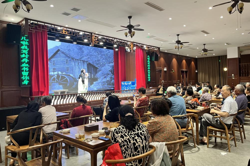 瀆上·老西門登灜老茶館的“曲藝小劇場”,彩唱《牙痕記》正在上演,160人的小劇場坐得滿滿當當。登灜老茶館每周推出四天惠民演出,相聲、淮劇、話劇、小品等輪番上演。