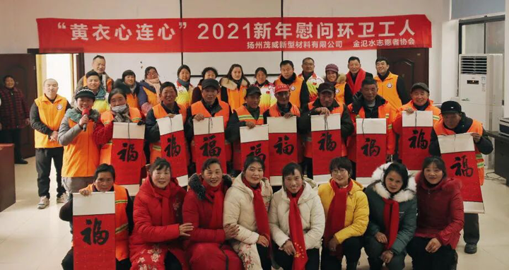 1月4日,寶應金氾水志愿者協會攜手揚州茂威新型材料有限公司,邀請文藝愛好者一同走進氾水鎮環衛所,舉辦“同穿黃衣心連心”新年慰問活動。