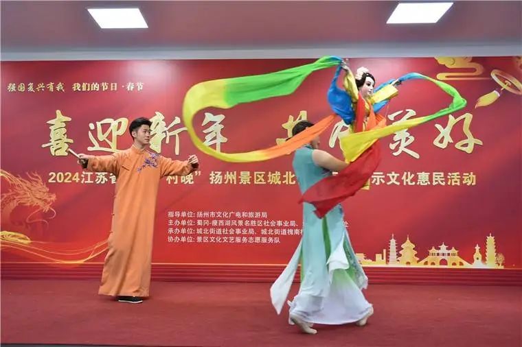 揚州蜀岡-瘦西湖風景名勝區圍繞“我們的節日·春節”組織開展了一系列精彩紛呈的文明實踐主題活動,社區自制的“春晚”,社區能人、優秀志愿者團隊大展身手,移風易俗、迎春集市、筆墨贈福等活動亮點紛呈,獨唱、戲曲、太極、樂器演奏等精彩演出贏得陣陣掌聲,讓廣大群眾在歡聲笑語中喜迎龍年新春。