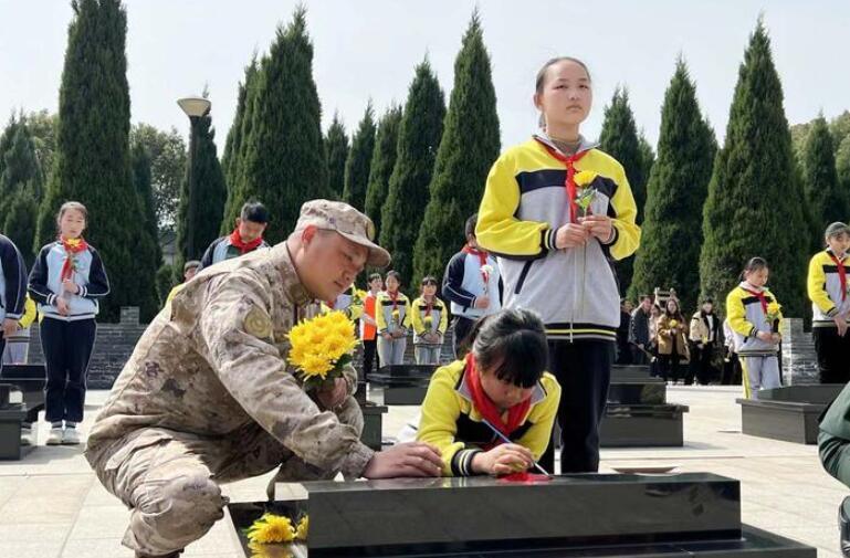 “一塊塊墓碑前,學生們為碑上的字描金,并仔細擦拭。”帶領學生參加祭掃活動的周老師表示,學生們還通過“我為烈士留下悄悄話小語貼”活動,隔空與烈士們“對話”,站在墓前,了解烈士背后的英勇事跡。