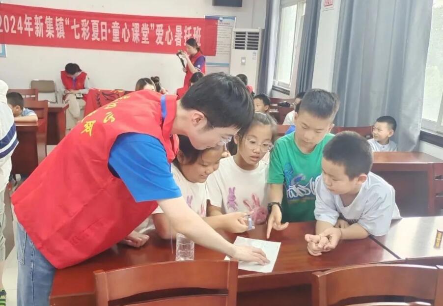 新集鎮邀請揚州大學廣陵學院“微芒成陽”社會實踐團隊開展以“傳統文化的傳承與創新”為主題的非遺體驗、科技探秘、中醫傳承等多彩活動,豐富孩子們的暑期生活。