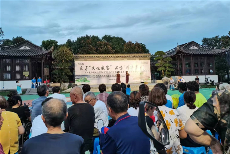 6月27日,揚州經開區新時代文明實踐中心在寶帶社區百姓大舞臺舉辦“點亮星夜”夏季納涼晚會,讓居民在納涼的同時享受健康向上的文藝節目,現場精心編排了舞蹈、大合唱、揚劇、走秀、葫蘆絲、彈詞等10多個市民喜聞樂見的文藝節目。