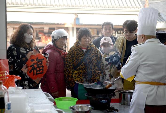 特色邗江肉紅紅火火,糖醋帶魚寓意年年有余,高郵汪豆腐寓意平平安安,菠蘿咕咾肉寓意甜甜蜜蜜……昨日上午,“你買菜,我來燒——名店名廚菜場公益行”第二場活動在方圈門農貿市場熱鬧舉行,現場人氣爆棚,菜香四溢,“明星大廚”盧彬、張廣旭師徒亮相,邊做菜邊分享經典菜肴的做法。與此同時,“買年菜,領春聯——揚州書法名師名家菜場公益行”活動火熱進行,書法名家現場揮毫潑墨,為來買年菜、囤年貨的市民送上文化“年味”。