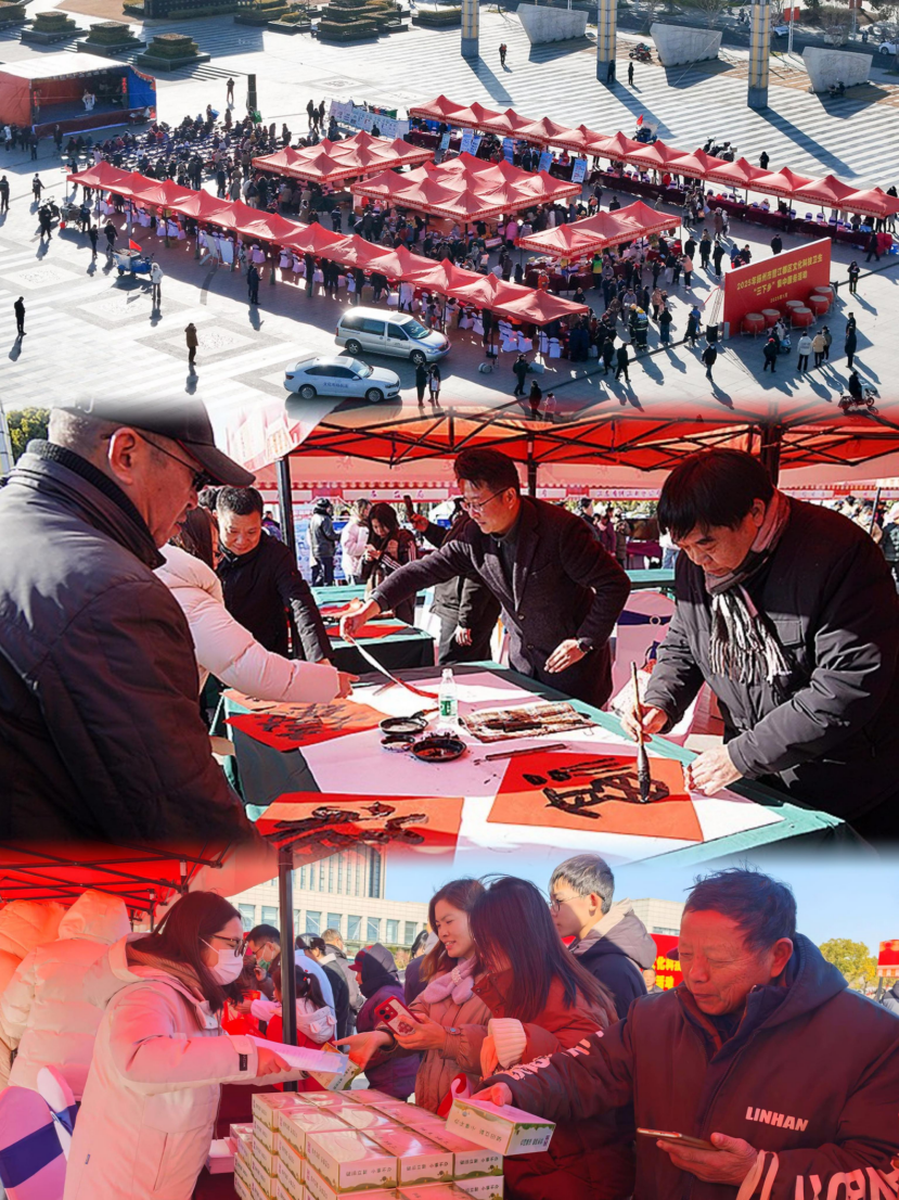 活動當天,現場布置得喜氣洋洋,紅燈籠高掛,彩旗飄揚,到處洋溢著濃濃的節日氛圍,現場分設書法家寫福送春聯、非遺體驗、舞臺表演、現場體驗、趣味游戲、吉時開獎等區域,吸引了數千名市民群眾齊聚于此,品民俗、享非遺、領春聯、觀演出,樂享非遺與民俗文化的盛會。