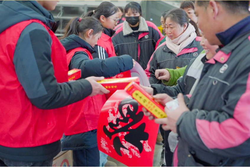 揚州市廣陵區開展“好地方少年行”主題志愿服務活動,為城市中的堅守崗位的城市服務者送去新春的慰問。志愿者們來到豐樹物流園,為快遞小哥誠摯慰問。現場精心準備了牛奶、面包等物品,讓寒冬里奔波的從業者們在忙碌間隙能夠補充能量。