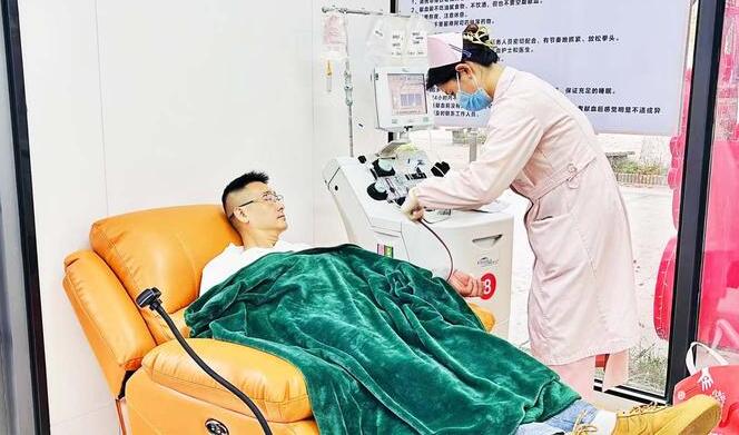 2023年起,他堅持每月一次獻血,將獻血視為“特殊的充電時間”?!耙粋€多小時看似漫長,實則是身心的沉淀?!睆堁┧尚ΨQ,自己獻完血從不休息,“獻血后照常工作,反而讓我更精神?!?/p>