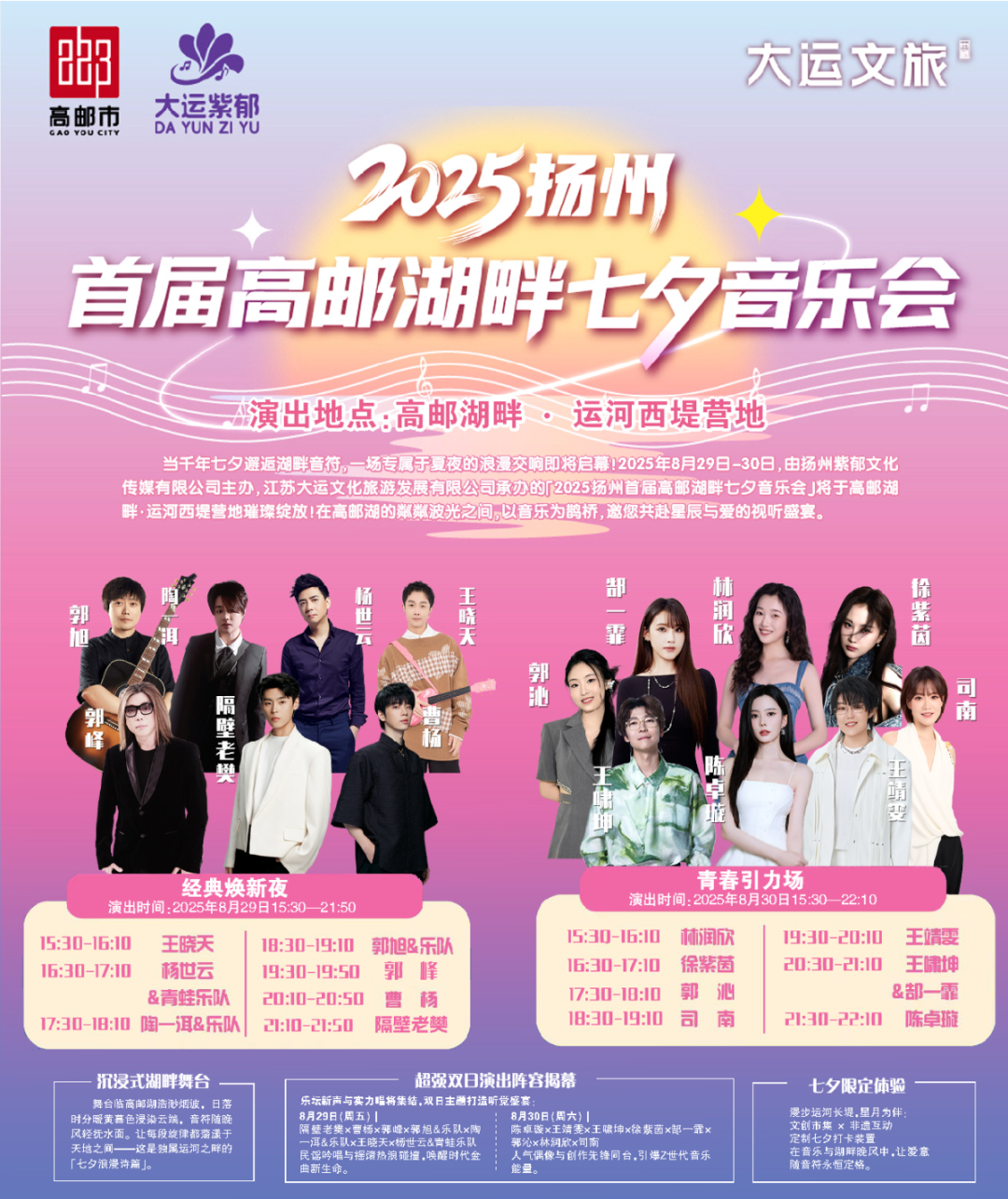 2025揚州高郵湖畔七夕音樂與您浪漫相約!在沉浸式湖畔舞臺,人氣偶像與創(chuàng)作先鋒同臺,引爆Z世代音樂能量。點擊這里查看詳情。