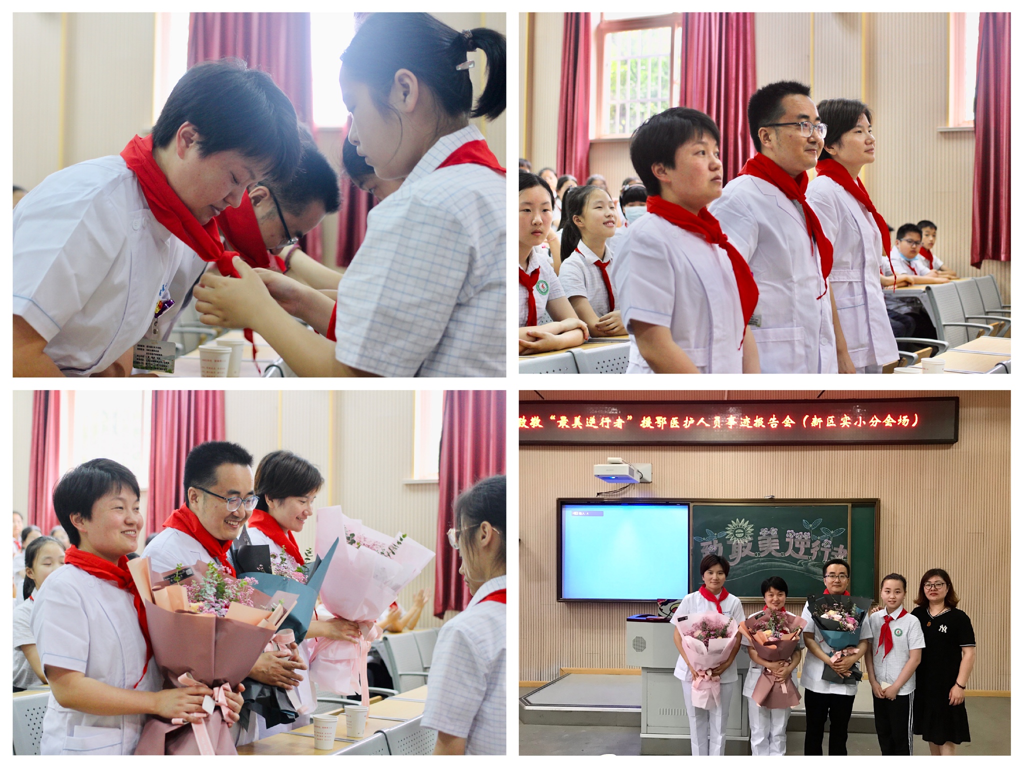白衣執甲,慷慨赴荊楚;春暖花開,榮耀歸故里。2020年,一場突如其來的新型冠狀肺炎疫情席卷中華大地。武漢告急,湖北告急,一群逆行者為我們負重前行,馳援武漢。援鄂一線的醫護人員不顧個人安危在國家危難之時逆行出征,直面病毒,用平凡之軀托起患者生的希望,他們的感人事跡值得我們敬佩和學習。6月5日下午,鎮江新區實驗小學特別邀請到了赴鄂抗疫第一線的最美逆行者—鎮江市第一人民醫院新區分院護理部蔡建副主任;ICU護士長李維亞;呼吸科張峰副主任,為我校師生作抗疫事跡報告。