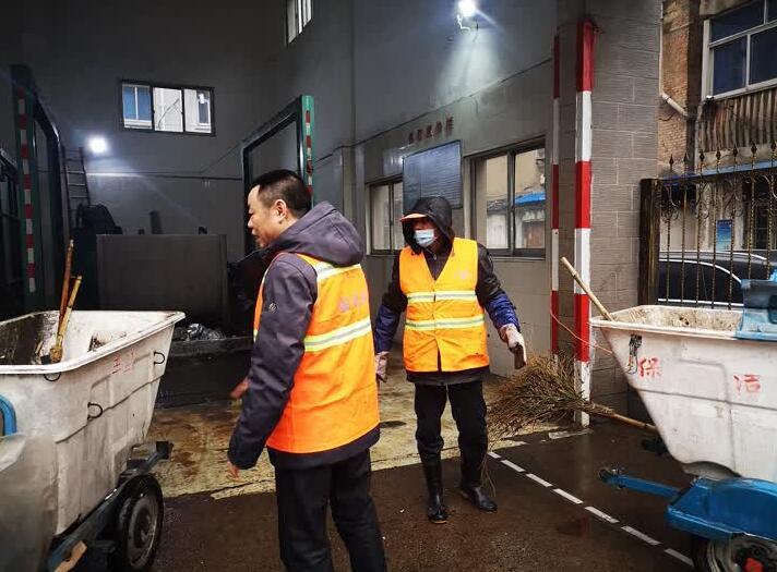 1月26日一大早,天空中飄著毛毛細雨,地面濕漉漉的,記者來到中華支路轉運站,在這里見到了一線環衛工人鄭德明,他剛巡查結束,傘都沒撐冒著細雨匆匆趕來。通過交談記者得知,鄭德明老家在河南信陽新縣,1988年不到20歲的他來到鎮江,到現在已經有33個年頭了,一直從事環衛工作。