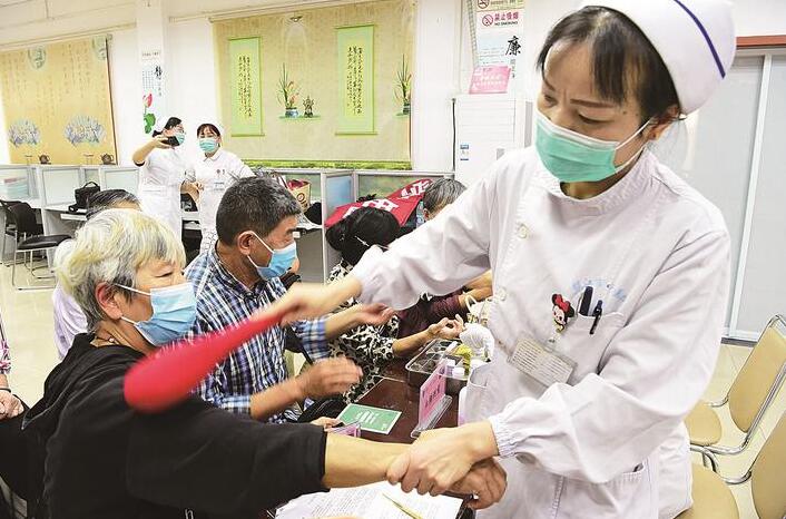 9月26日,市中醫(yī)院的醫(yī)護(hù)人員走進(jìn)古城社區(qū),開展迎重陽“中醫(yī)護(hù)理送健康”關(guān)愛老人志愿者行動(dòng),為居民們提供量血壓、耳穴埋籽、循經(jīng)拍打、發(fā)放健康茶包等服務(wù),講解秋季慢性病、多發(fā)病的預(yù)防和治療,把健康知識(shí)送到居民家門口。王呈 李桂花 攝影報(bào)道