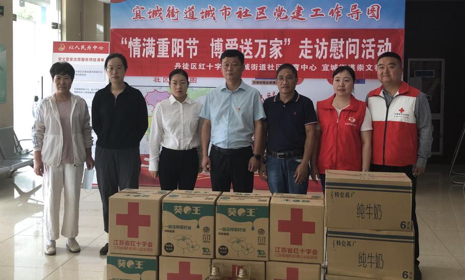 交匯點訊 9月22日上午,在2022年重陽節來臨之際,丹徒區紅十字會、宜城街道社區教育中心和崇文社區聯合開展“情滿重陽節 博愛送萬家”走訪慰問活動。